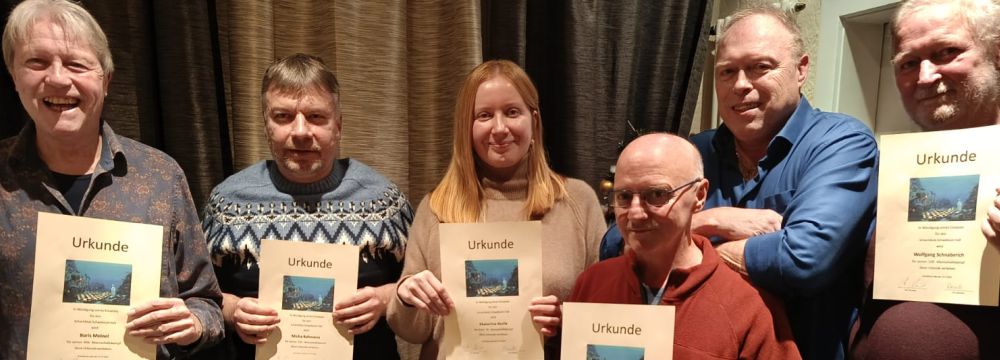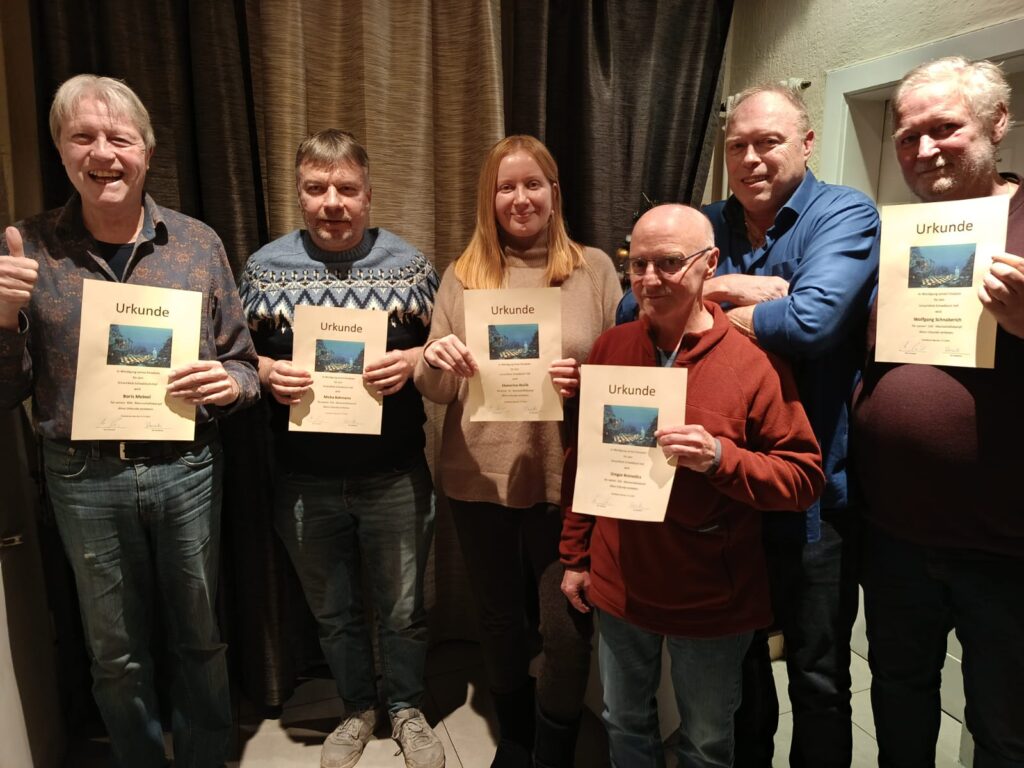 Bei der diesjährigen Weihnachtsfeier im Restaurant Calvin nahm der 2. Vorsitzende Mario Meinel die folgenden Ehrungen für Einsätze für den SK Schwäbisch Hall vor: Boris Meinel 450 Spiele, Micha Bahmann150 Spiele, Ekaterina Atalik 75 Spiele, Gregor Krenedics 350 Spiele, Wolfgang Schnaberich 150 Spiele.