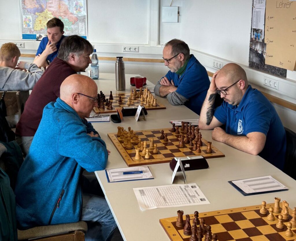 Gegen den Aufsteiger von der Ostalb aus Plüderhausen mussten die Spieler um Kapitän Krenedics hart arbeiten, um in Runde 7 der Verbandsliga Nord zum Erfolg zu kommen. Urgestein Boris Meinel siegte kampflos, da der Gegner zu spät zum Spiel erschien. Peter Svana nutzte die Lücken im Aufbau seines Gegners und konnte die technische Überlegenheit zum Sieg ausnutzen. Micha Bahmann, Jaroslav Buran und Petr Kapusta einigten sich mit ihren Kontrahenten auf Unentschieden. Kapitän Gregor Krenedics ging grippegeschwächt an den Start und verlor. Antoine Manoeuvre am Spitzenbrett gewann souverän das entscheidende Spiel. Der 11-jährige Lennart Naumann opferte einen Bauern, um gewaltigen Druck auf die Stellung auszuüben und gewann verdient sein Spiel. Damit grüßt der SK weiterhin vom Platz an der Sonne in der Tabelle, ist allerdings nach wie vor punktgleich mit der TSV Schönaich 2, gegen die es in der nächsten Runde am 29.3. in Schwäbisch Hall geht.