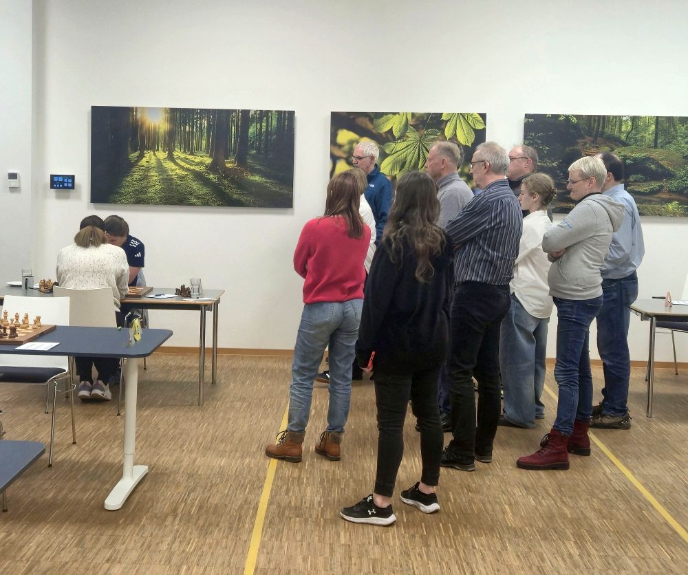 Was geschah an den anderen Spielorten? Baden-Baden schlug Hemer 4,5-1,5, aber im Parallelspiel gab es eine Überraschung: Freiburg schlug Solingen mit 3,5-2,5. In Rodewisch kommen die Schachmiezen langsam ins Rollen, Harksheide, dieses Mal allerdings nicht stark aufgestellt, wurde mit 6-0 abgefertigt. Im Verfolgerduell gab es ein 3-3 zwischen Bad Königshofen und Hamburg, Yelyzaveta Hrebenshchykova schaffte gegen Antonia Ziegenfuß noch den Ausgleich für den Titelverteidiger. In Richtung Wahrung eventueller Meisterschaftschancen nutzt das Unentschieden beiden eher wenig.